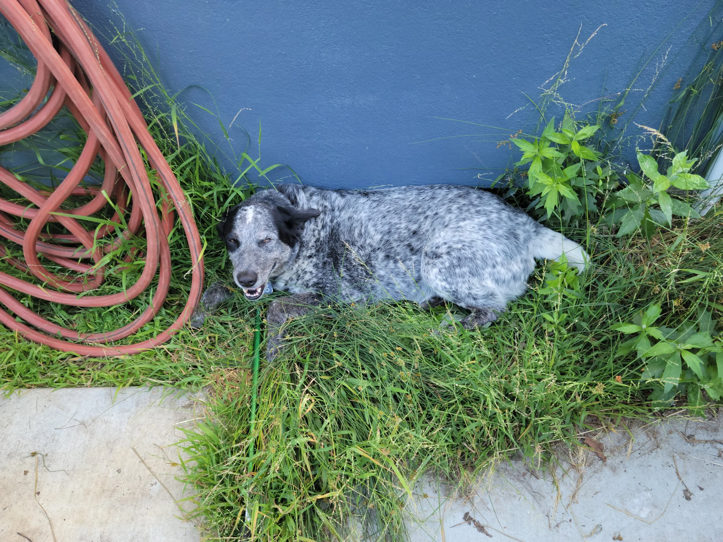 Jabo is a five year old rescue that runs the daily operations at WFN. Jabo runs the farm, clearing the way of birds and varmints. His favorite thing to do is lay in the shade and watch over Nate. His second favorite thing to do is hunt whatever he can get his little paws on. Jabo loves chewing on broccoli stems and eating Jaboticaba fruits. He is a good boy.