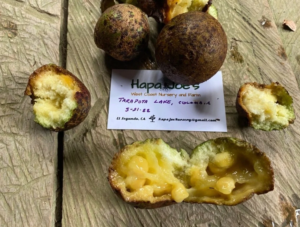 The Psidium sp. ‘Colombian Cream’ guava is certainly a very interesting and distinct species that has entered my collection. It is easily the most vigorous Psidium spp. that I’ve grown and it has a very distinct foliage. The fruit has a brownish russeted exterior that definitely disguises it well within the trees foliage and canopy. The fruit is said to have a creamy delicious flesh which. It is also from an area that infers that it has some cold hardiness. There’s not a lot known about this species or even it’s true identity as the species has not been identified. So join me in taking advantage of this beautiful on the inside guava!